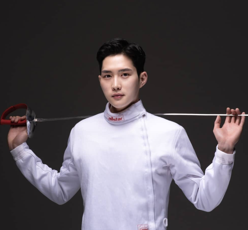 김준호 펜싱 선수가 '돌싱포맨'이라는 SBS 예능 프로그램에 출연하여 찍은 사진입니다. 펜싱에 김준호가 있다면 연예계에는 금메달을 목에 건 김준호 님이 있습니다. 한창 개그우먼 김지민 님과 연애하느라 바쁘시다고 합니다.
