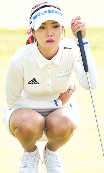 그렇다면 퍼팅 라인을 보는 유현주 프로와 안신애 프로는 어떤 모습을 하고 있을까요?