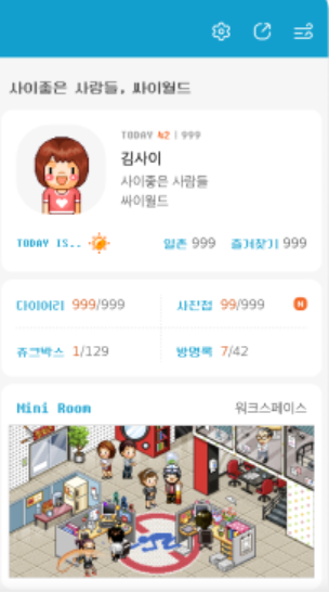 다른 사용자를 친구로 추가하여 쪽지를 주고받거나 방명록에 메시지를 남기며 소통할 수 있었다.