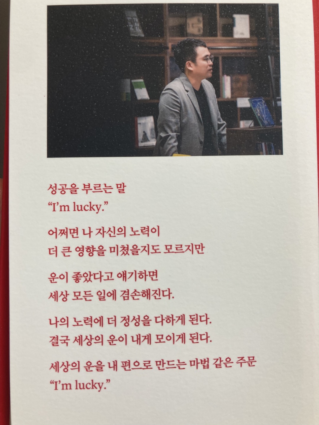 럭키 : 내 안에 잠든 운을 깨우는 7가지 법칙 필자가 이 책을 알게된 것은 유튜브에 지은이(김작가=김도윤 작가) 가 나와서 인터뷰하는 영상을 보게 되어서다. 글쓴이가 이런 얘기를 했는데, 그