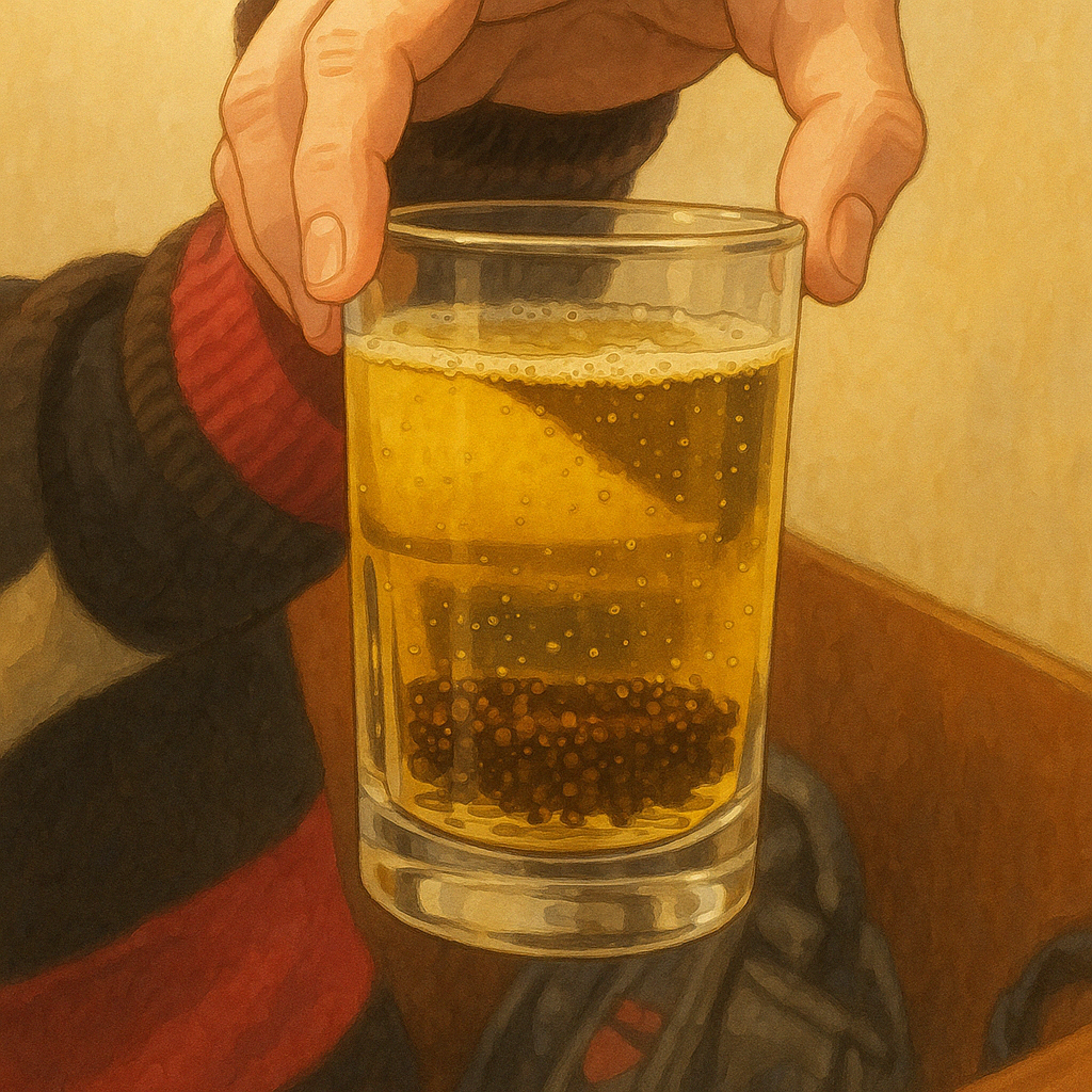 제조법: 큰 잔에 소주와 맥주를 섞고, 입구를 휴지로 막은 후 손바닥으로 덮고 빠르게 원을 그리며 돌려 거품을 일으켜 주세요.